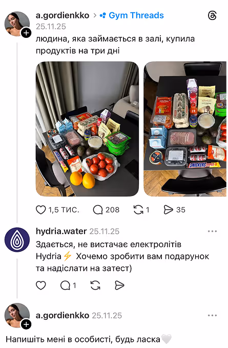 І, забігаючи наперед — ми пішли й у Threads. Тут можна говорити вільніше, ловити нішеві ком’юніті та спілкуватися з людьми, які поділяють наш вайб. Там не пишемо, а спілкуємось, й інколи відправляємо подарунки тим, хто починає свій спортивний шлях – так отримуємо щирий відгук й постійного покупця :)